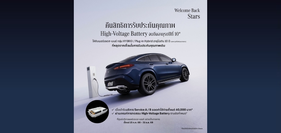 คืนสิทธิการรับประกันคุณภาพ High Voltage Battery จนถึงอายุรถปีที่ 10 ให้กับลูกค้าเมอร์เซเดส-เบนซ์ กลุ่ม Hybrid และ Plug-in Hybrid อายุไม่เกิน